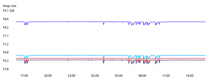 API 服务器可能会占用相当多的内存,并且往往会与集群中的节点数量成线性比例。对于我们有 7500 个节点的集群,我们观察到每个 API 服务器使用高达 70GB 的堆内存,因此幸运地是,未来这应该仍然在硬件能力范围之内。