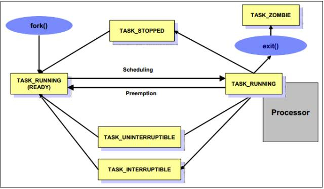 每一个进程都有其生命周期,例如创建、运行、终止和消除。这些阶段会在系统启动和运行中重复无数次。因此,进程的生命周期对于其性能的分析是非常重要的。下图展示了经典的进程生命周期。