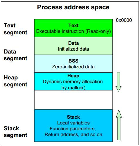 进程内存区由以下几部分组成: