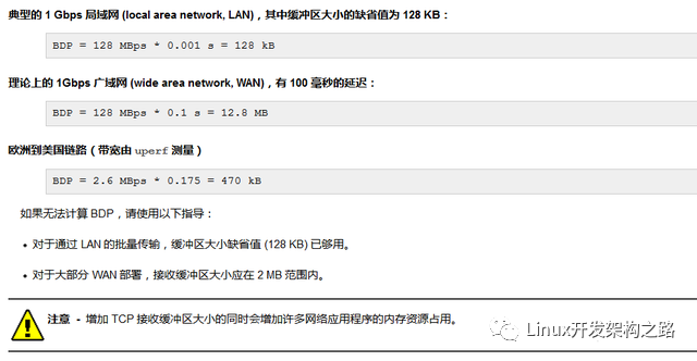 可以通过计算当面节点带宽和统计平均时延来估算BDP,即缓冲区的大小,可以参考下面常见场景估计: