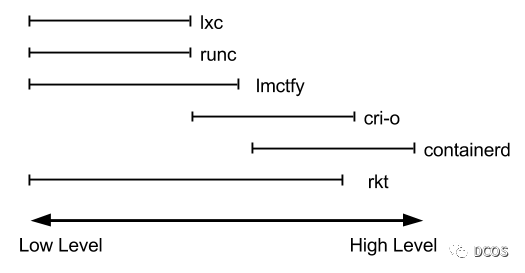 可以发现,容器运行时是相当复杂的。每个运行时都涵盖了从低级到高级的不同部分,如下图所示