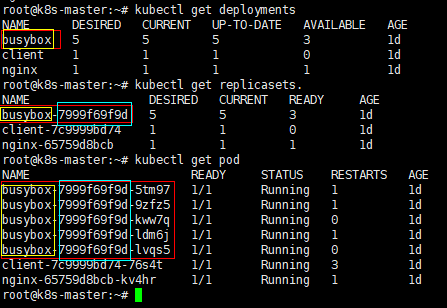 一般情况都不会直接使用 Pod,而是通过 Controller(控制器) 来创建。通过 Controller 创建一个 POD 的流程为,以及 POD 名字的命名方式每个对象的命名方式是:子对象的名字 = 父对象名字 + 随机字符串或数字。如图所示
