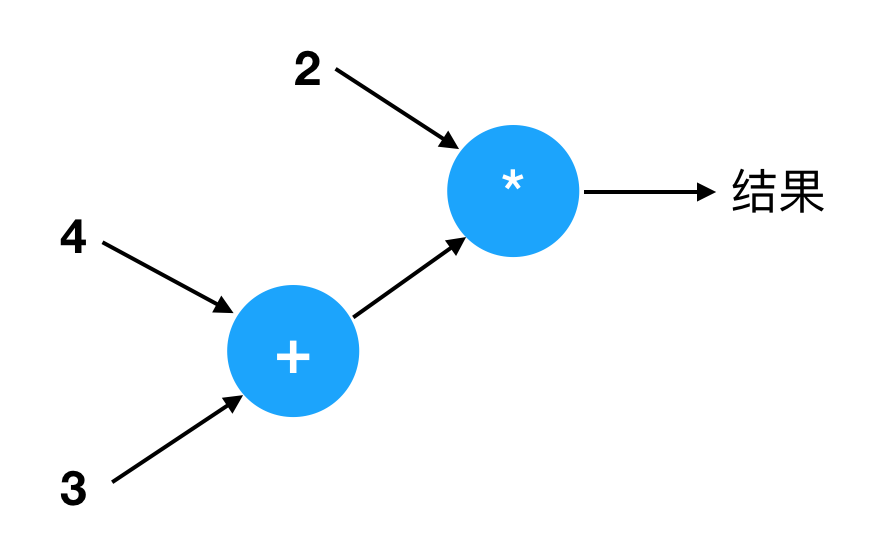 这个表达式比 4 + 3 多了一个运算,我们把它叫做 “复合表达式”。这个表达式也可以用计算图来表示: