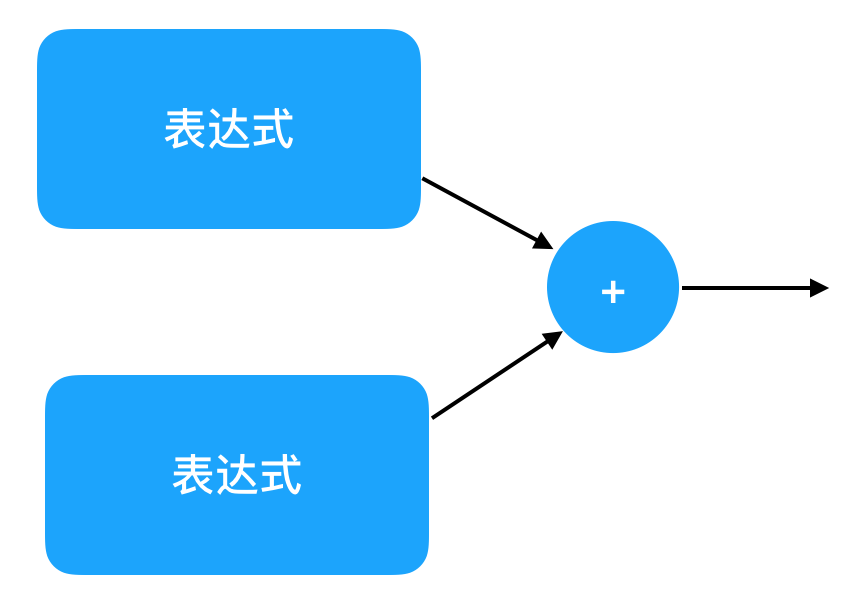 - 表达式 + 表达式。两个表达式相加,也是表达式。