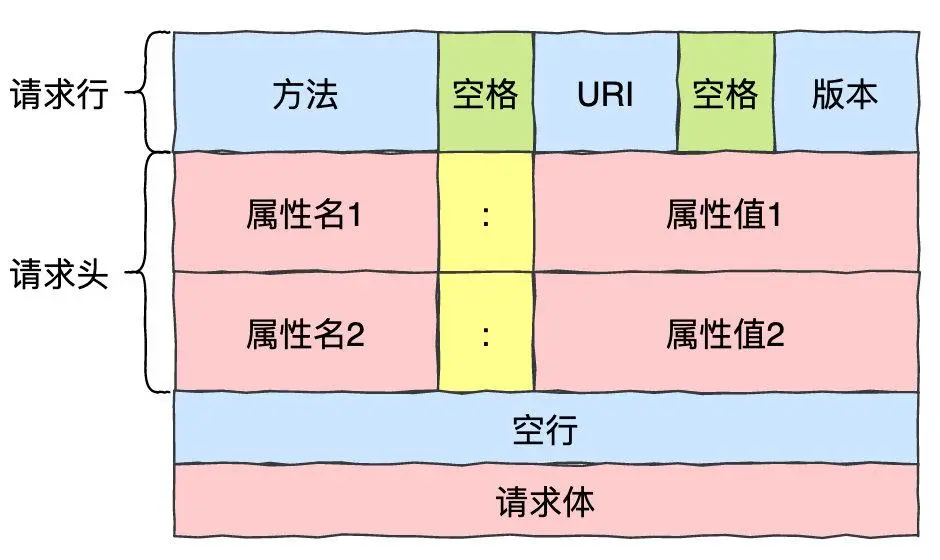 - 建立连接后,客户机发送一个请求给服务器,请求方式的格式为:URL、协议版本号、后面是 MIME 信息包括请求修饰符、客户机信息和可能得内容