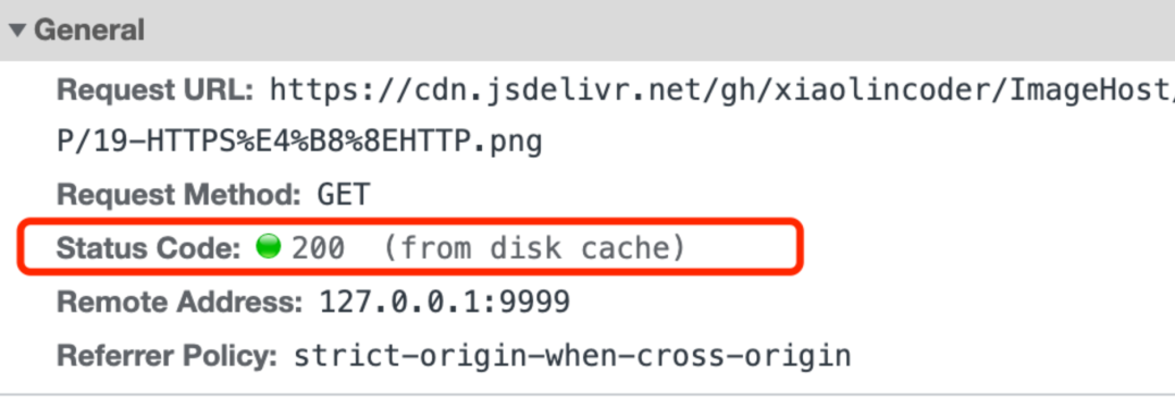 如下图中,返回的是 200 状态码,但在 size 项中标识的是 from disk cache,就是使用了强制缓存。