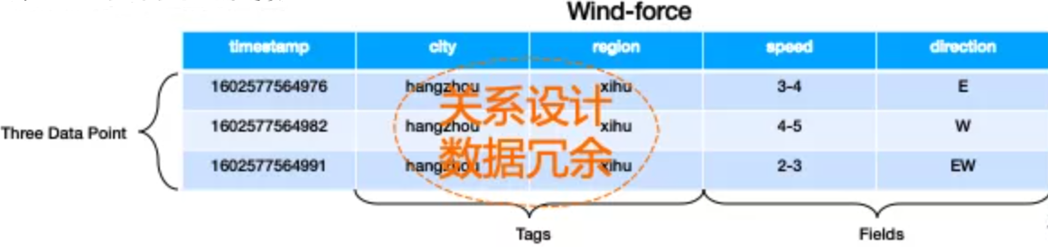 - Metrics(指标) # 用来描述要采集的数据指标。例如:检测各个城市的风力、系统内存已使用的字节数 等等。相当于关系型数据库中的表。