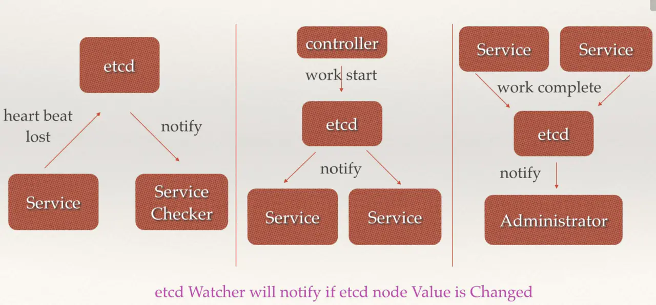 - 当服务完成 work 会讲状态更新至 etcd,etcd 对应会通知用户