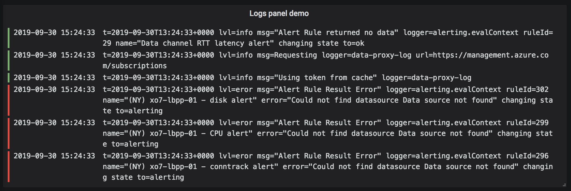 日志面板可视化显示了来自支持日志的数据源的日志行,例如 Elastic,Influx 和 Loki。通常,您将在图形面板旁边使用此面板来显示相关过程的日志输出。