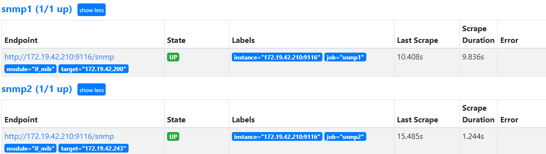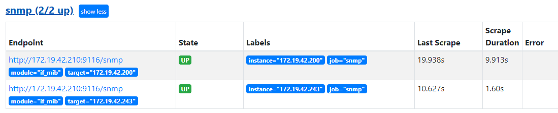 - 172.19.42.210:9116 # 指定 snmp_exporter 监听的 IP:PORT